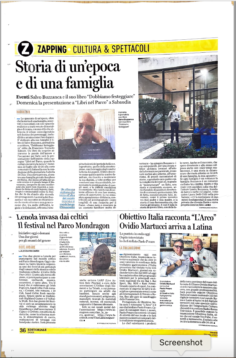 Rassegna Stampa: Premio Pavoncella XII Edizione (24 giugno 2023) di premiopavoncella19 Giugno 202321 Febbraio 2024News, Rassegna Stampa Premio Editoriale-Oggi-.1 Immagine 4 di 18