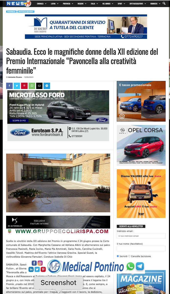 Rassegna Stampa: Premio Pavoncella XII Edizione (24 giugno 2023) di premiopavoncella19 Giugno 202321 Febbraio 2024News, Rassegna Stampa Premio NEWS-24-12 Immagine 15 di 18