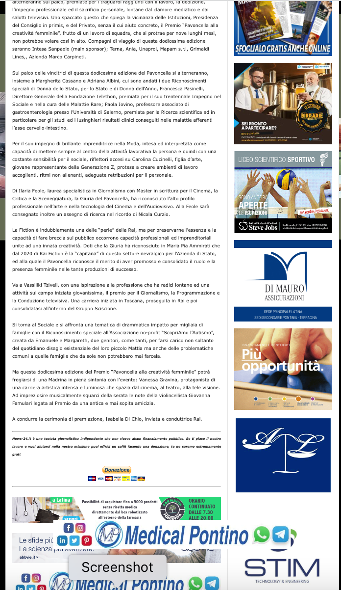 Rassegna Stampa: Premio Pavoncella XII Edizione (24 giugno 2023) di premiopavoncella19 Giugno 202321 Febbraio 2024News, Rassegna Stampa Premio NEWS24-22 Immagine 16 di 18
