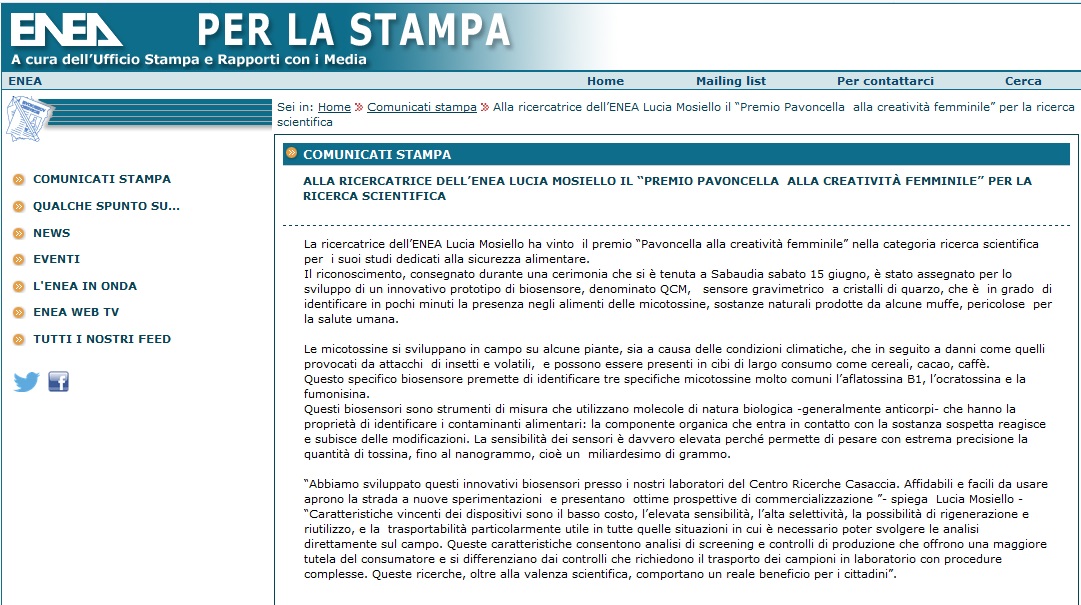 Comunicati Stampa: Premio Pavoncella II Edizione ( 15 giugno 2013) Enea.it: 17 Giugno 2013 Immagine 1 di 2 Share Me On: