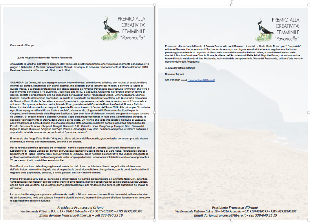 Comunicati Stampa: Premio Pavoncella VIII Edizione (15 giugno 2019) Secondo-Comunicato-Stampa Immagine 2 di 3 Share Me On: