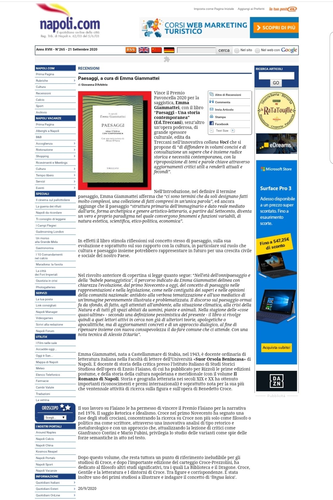 Rassegna Stampa: Premio Pavoncella IX Edizione ( 19 settembre 2020) Napoli.com 20 settembre 2020 Immagine 10 di 36 Share Me On: