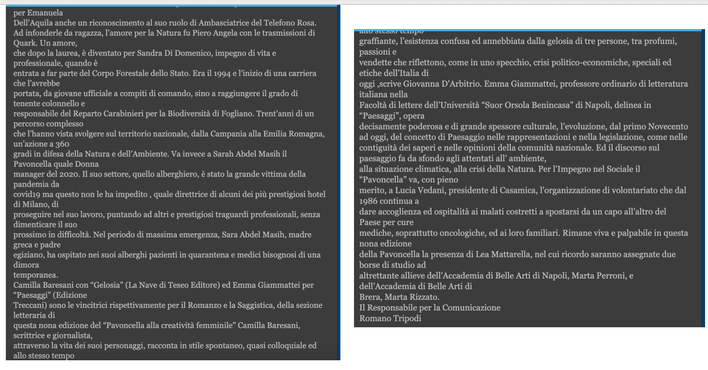 Rassegna Stampa: Premio Pavoncella IX Edizione ( 19 settembre 2020) RadioOndablu: 8 Settembre 2020 2/2 Immagine 26 di 36 Share Me On: