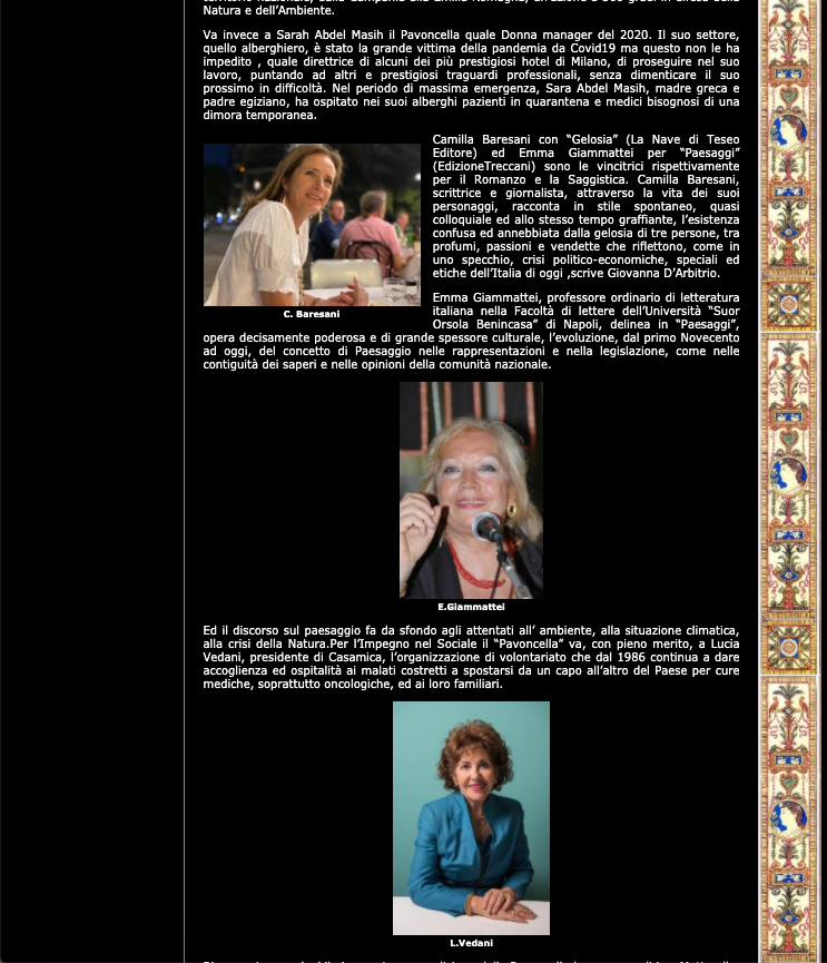 Rassegna Stampa: Premio Pavoncella IX Edizione ( 19 settembre 2020) Scena Illustrata 8 Settembre 2020 3/4 Immagine 18 di 36 Share Me On:
