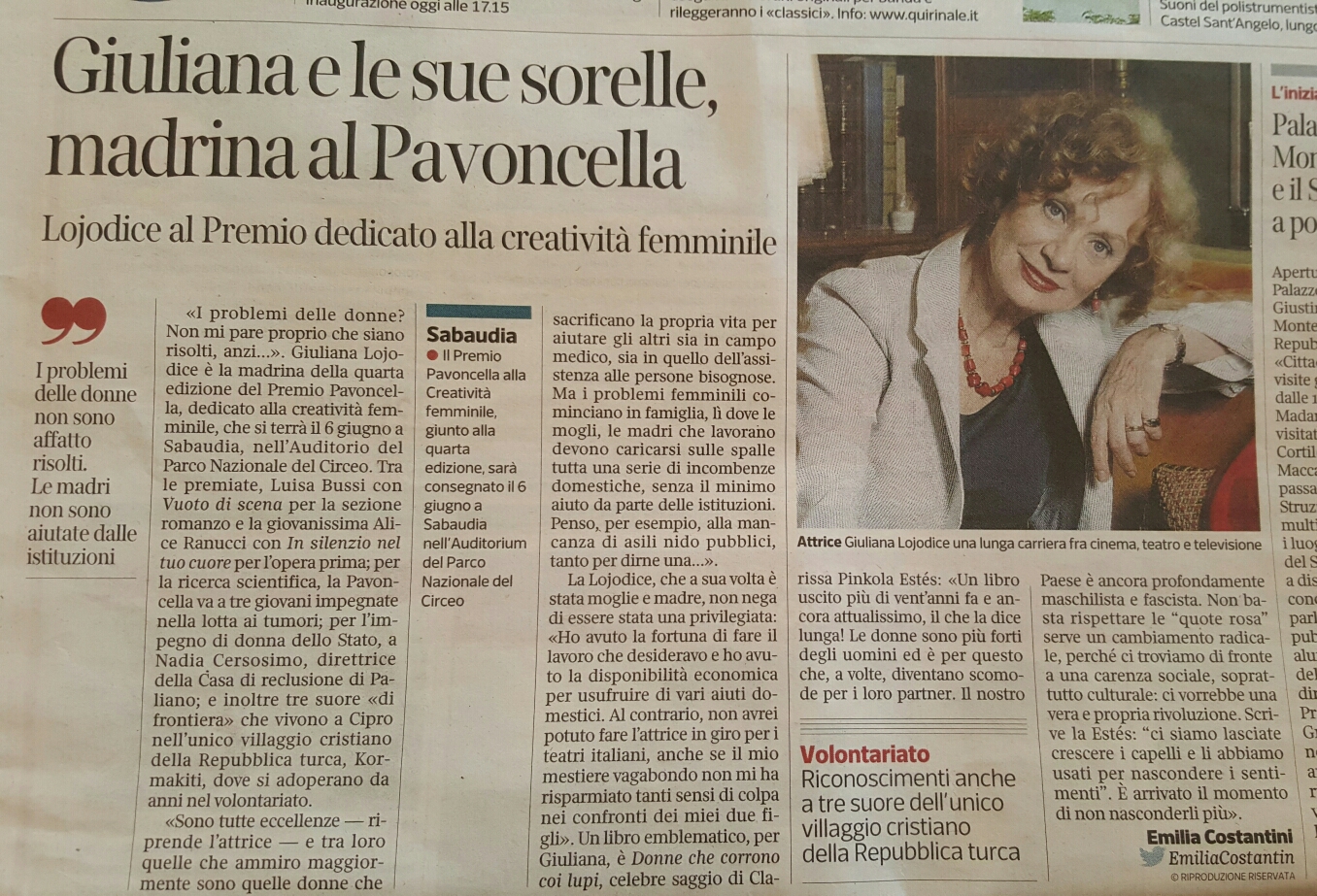 Rassegna Stampa: Premio Pavoncella IV Edizione ( 6 giugno 2015) Corriere della Sera: 20 Giugno 2015 Immagine 23 di 25 Share Me On: