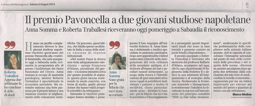 Rassegna Stampa: Premio Pavoncella IV Edizione ( 6 giugno 2015) Corriere del Mezzogiorno: 6 Giugno 2015 Immagine 17 di 25 Share Me On: