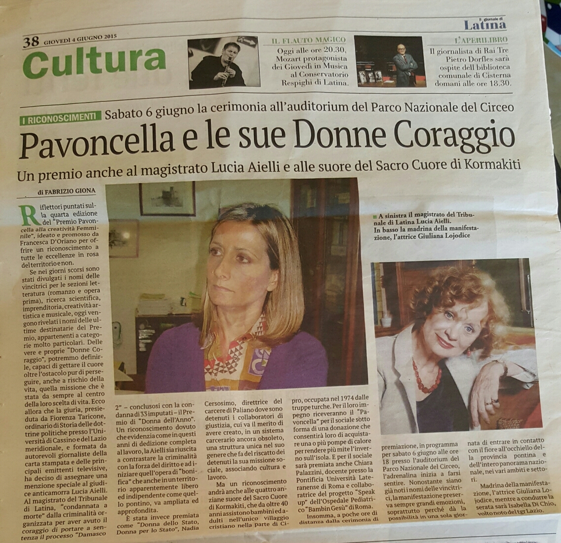 Rassegna Stampa: Premio Pavoncella IV Edizione ( 6 giugno 2015) Il Giornale di Latina: 4 giugno 2015 Immagine 14 di 25 Share Me On: