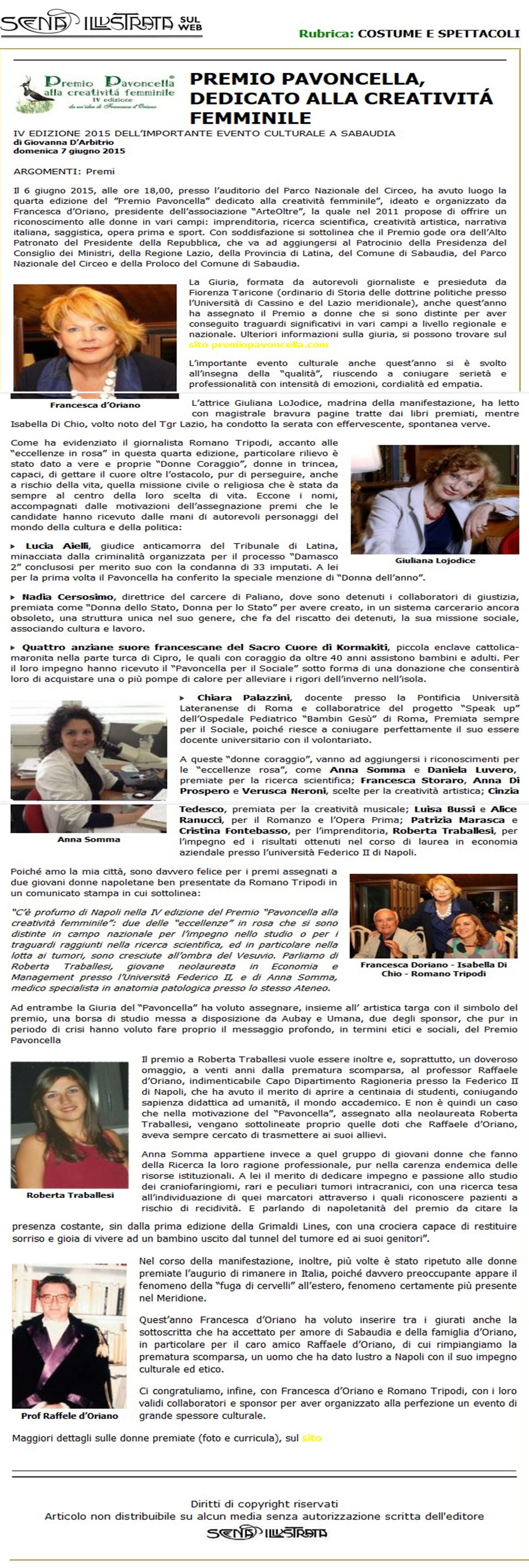 Rassegna Stampa: Premio Pavoncella IV Edizione ( 6 giugno 2015) Scena Illustrata: 12 Giugno 2015 Immagine 21 di 25 Share Me On: