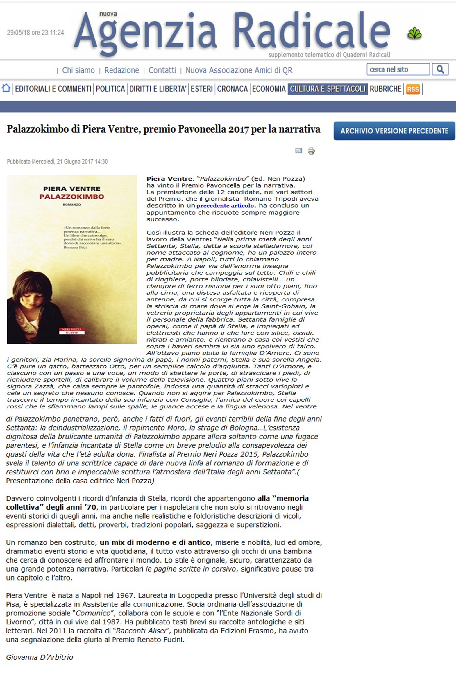 Rassegna Stampa: Premio Pavoncella VI Edizione (17 giugno 2017) Agenzia Radicale: 21 Giugno 2017 Immagine 17 di 21 Share Me On: