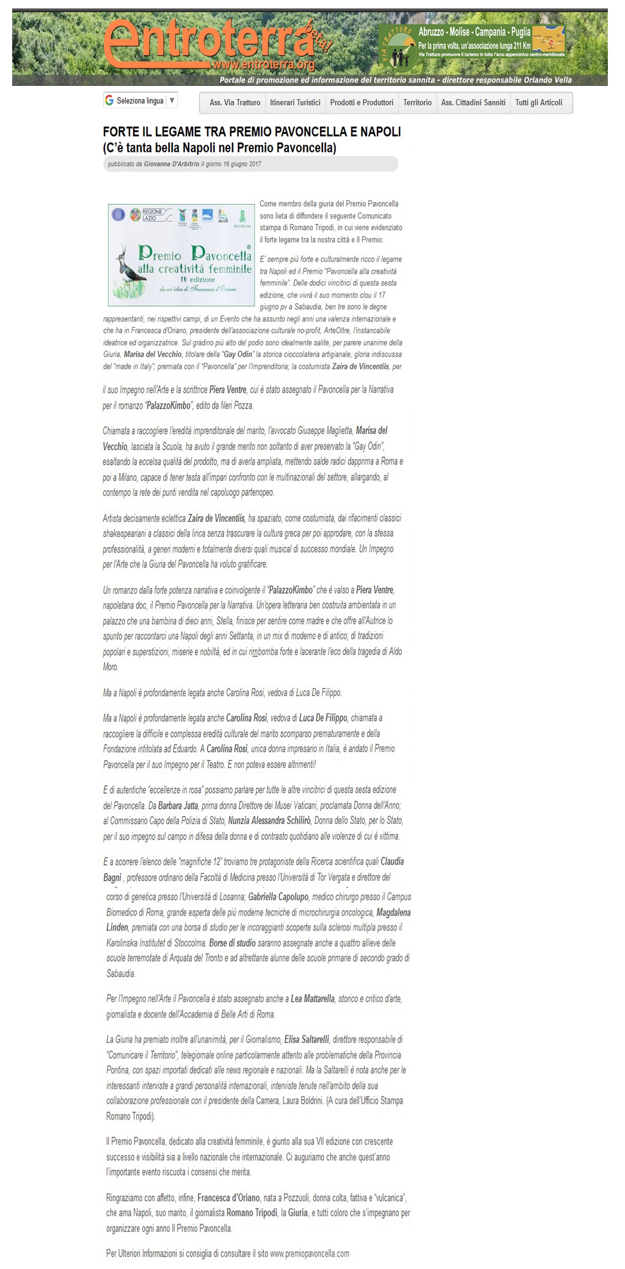 Rassegna Stampa: Premio Pavoncella VI Edizione (17 giugno 2017) Entroterra: 16 Giugno 2017 Immagine 7 di 21 Share Me On: