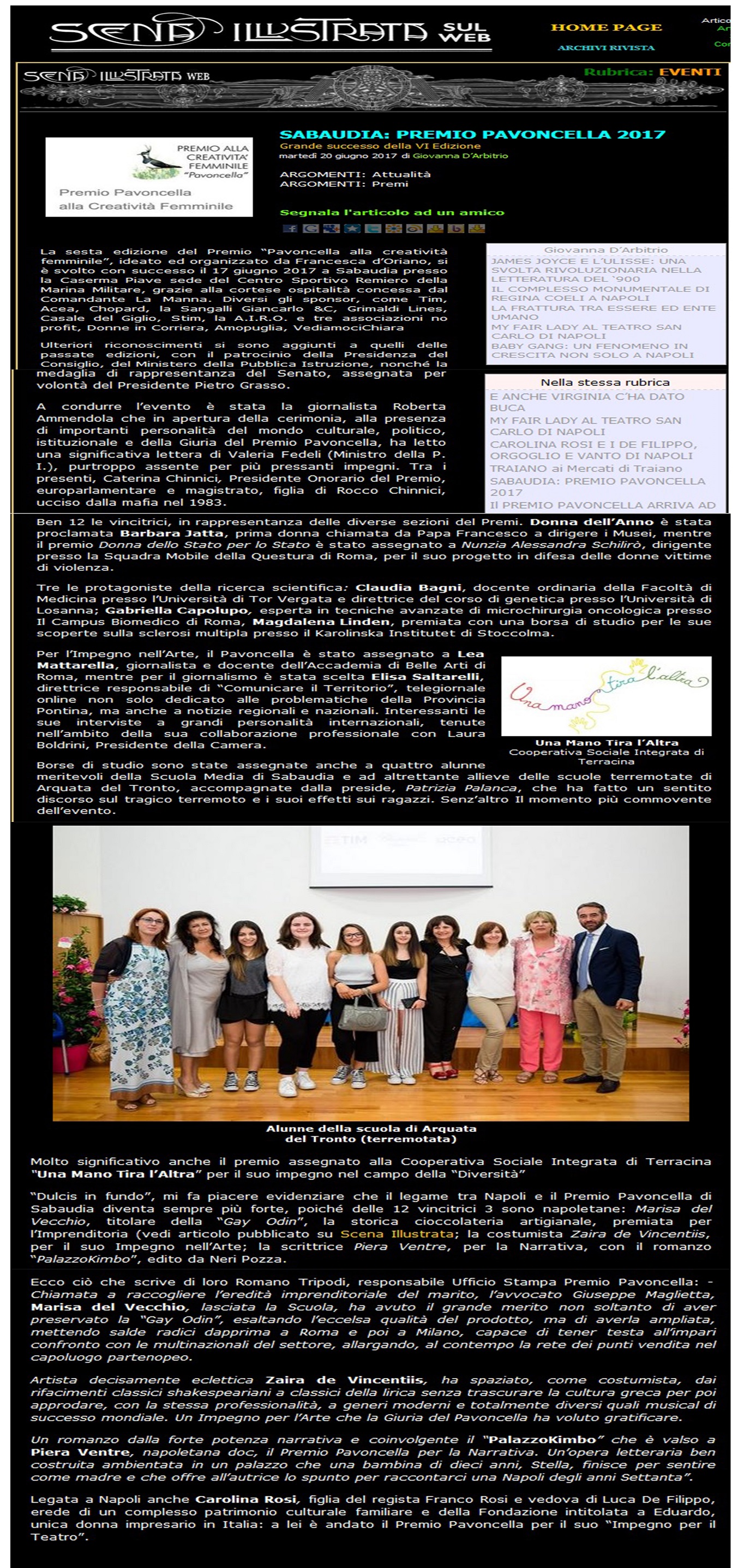 Rassegna Stampa: Premio Pavoncella VI Edizione (17 giugno 2017) Scena Illustrata: 20 Giugno 2017 Immagine 14 di 21 Share Me On: