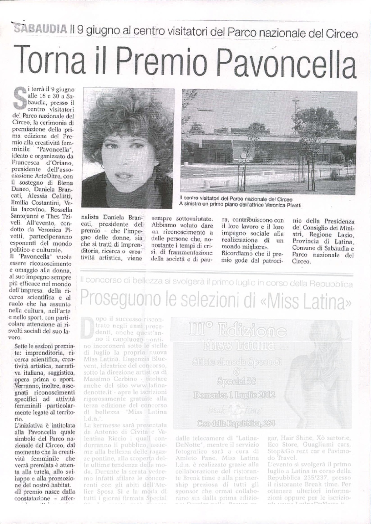 Rassegna Stampa: Premio Pavoncella I Edizione (9 giugno 2012) La Provincia: 14 Giugno 2012 Immagine 31 di 34 Share Me On: