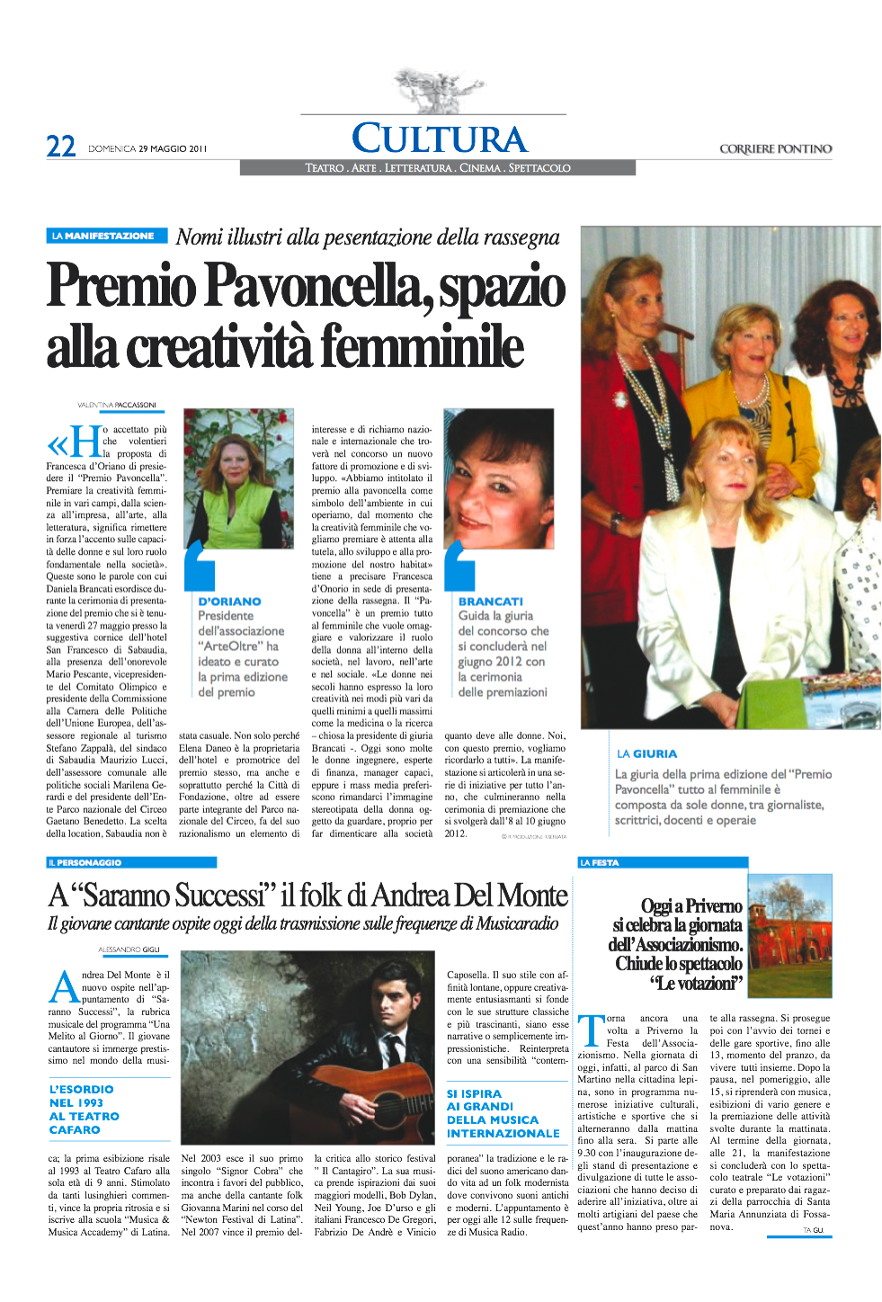 Rassegna Stampa: Premio Pavoncella I Edizione (9 giugno 2012) Il Corriere Pontino: 29 Maggio 2011 Immagine 5 di 34 Share Me On: