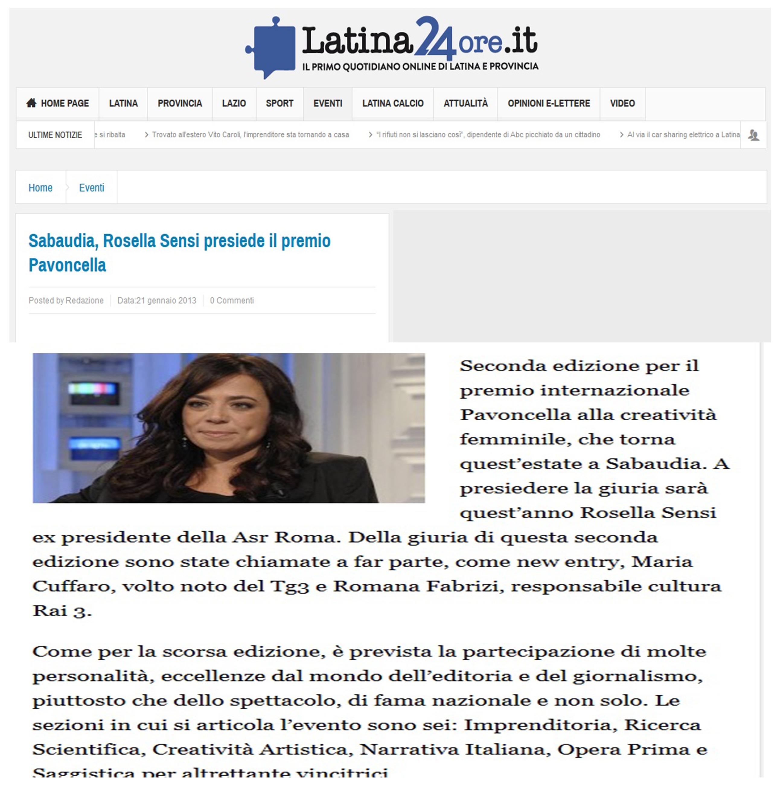 Rassegna Stampa: Premio Pavoncella II Edizione (15 giugno 2013) Latina 24 Ore: 21 Gennaio 2013 Immagine 3 di 23 Share Me On: