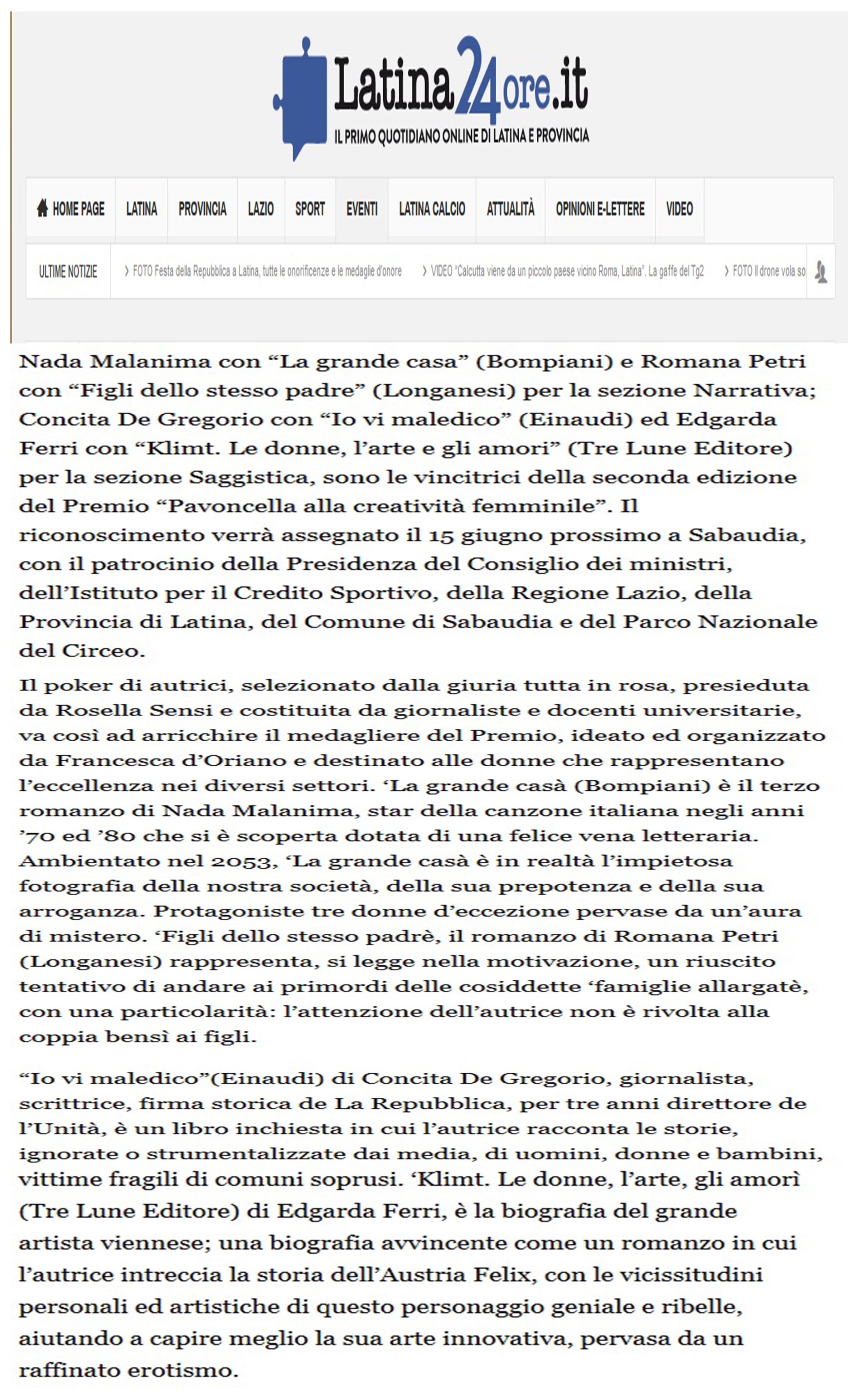 Rassegna Stampa: Premio Pavoncella II Edizione (15 giugno 2013) Latina 24 Ore: 30 Maggio 2013 Immagine 6 di 23 Share Me On: