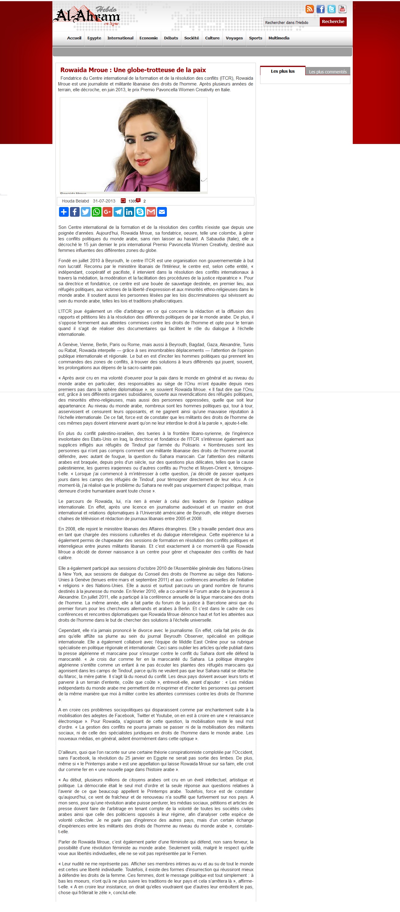 Rassegna Stampa: Premio Pavoncella II Edizione (15 giugno 2013) AL-AHRAM(stampa Egiziana): 31 Giugno 2013 Immagine 21 di 23 Share Me On: