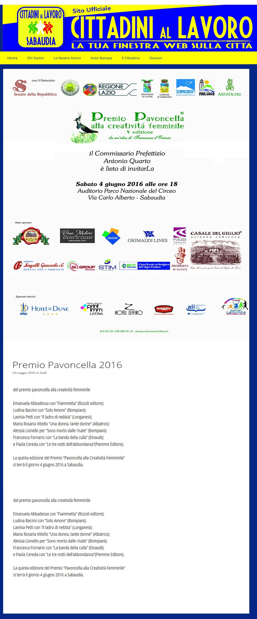 Rassegna Stampa: Premio Pavoncella V Edizione (4 giugno 2016) Cittadini al Lavoro: 22 Maggio 2015 Immagine 11 di 32 Share Me On:
