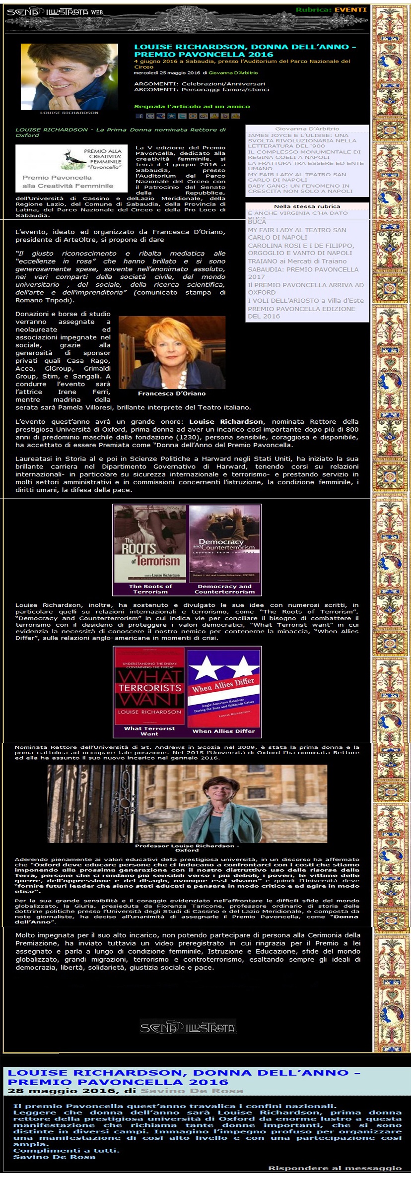 Rassegna Stampa: Premio Pavoncella V Edizione (4 giugno 2016) Scena Illustrata: 25 Maggio 2016 Immagine 15 di 32 Share Me On: