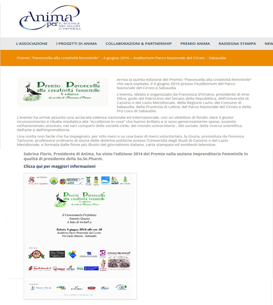 Rassegna Stampa: Premio Pavoncella V Edizione (4 giugno 2016) Anima per il Sociale: 1 giugno 2016 Immagine 18 di 32 Share Me On: