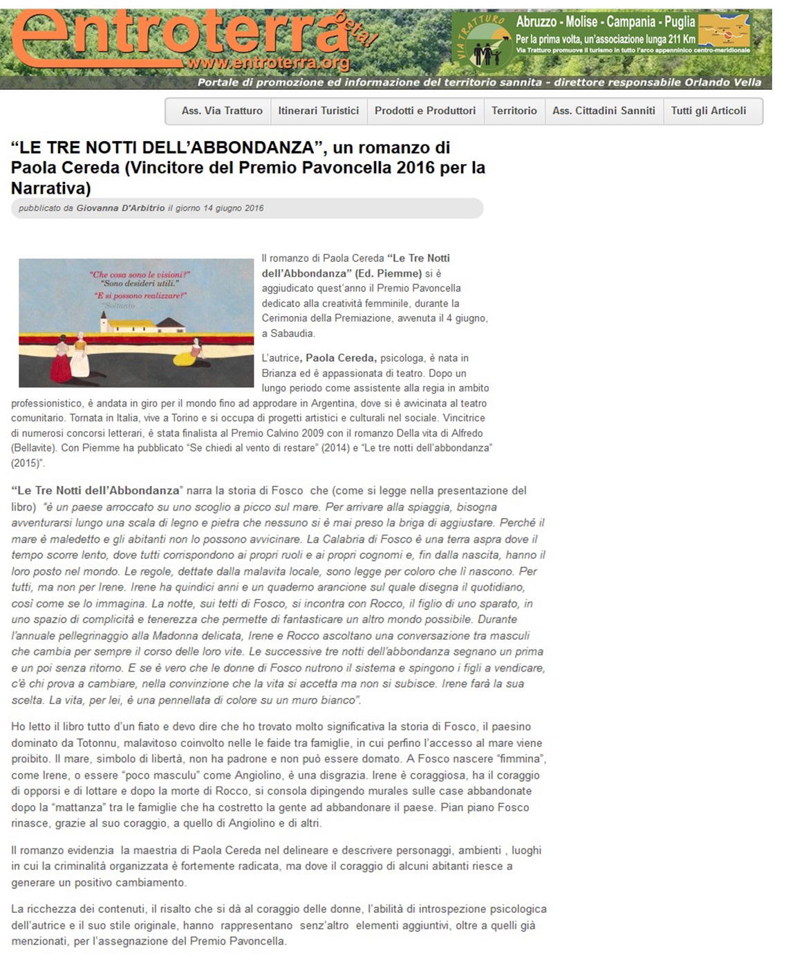 Rassegna Stampa: Premio Pavoncella V Edizione (4 giugno 2016) Entroterra: 14 Giugno 2016 Immagine 30 di 32 Share Me On: