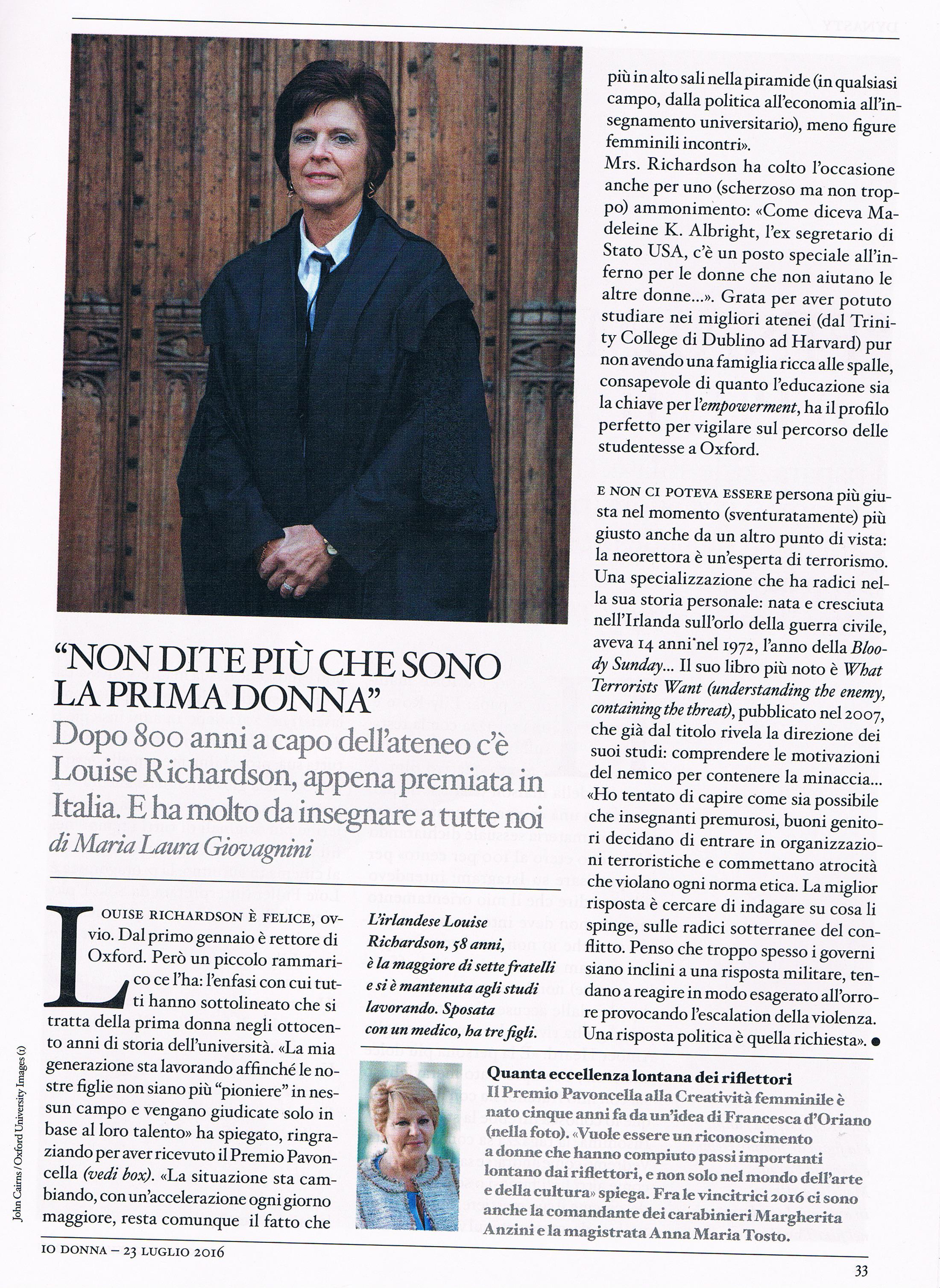 Rassegna Stampa: Premio Pavoncella V Edizione (4 giugno 2016) IO Donna (Corriere della Sera): 23 Luglio 2016 Immagine 32 di 32 Share Me On: