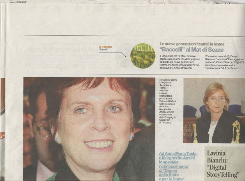 Rassegna Stampa: Premio Pavoncella V Edizione (4 giugno 2016) Latina Editoriale Oggi: 21 Maggio 2016 Immagine 8 di 32 Share Me On: