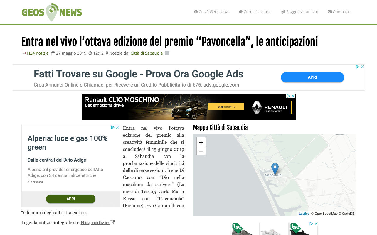 Rassegna Stampa: Premio Pavoncella VIII Edizione (15 giugno 2019) Geonews 20 Maggio 2019 Immagine 29 di 45 Share Me On: