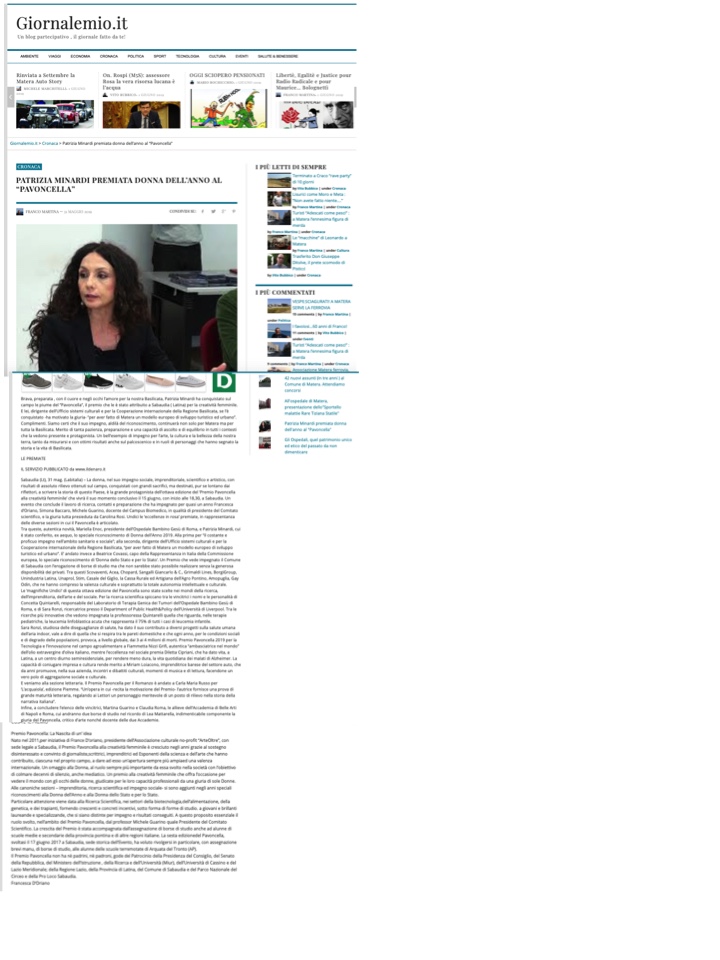 Rassegna Stampa: Premio Pavoncella VIII Edizione (15 giugno 2019) Giornalemio.it 31 Maggio 2019 Immagine 40 di 45 Share Me On:
