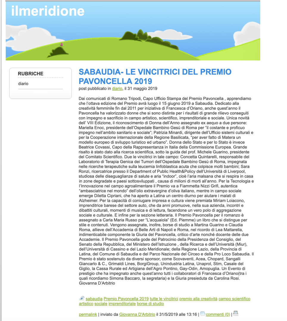 Rassegna Stampa: Premio Pavoncella VIII Edizione (15 giugno 2019) Il-Meridione-31052019 Immagine 36 di 45 Share Me On: