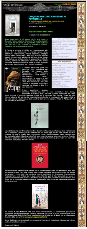 Rassegna Stampa: Premio Pavoncella VIII Edizione (15 giugno 2019) Scena Illustrata: 29 Maggio 2019 Immagine 30 di 45 Share Me On: