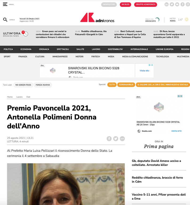 Rassegna Stampa: Premio Pavoncella X Edizione (4 settembre 2021) Adnkronos 1/3 Immagine 5 di 52 Share Me On: