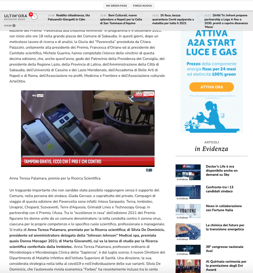 Rassegna Stampa: Premio Pavoncella X Edizione (4 settembre 2021) Adnkronos 2/3 Immagine 6 di 52 Share Me On: