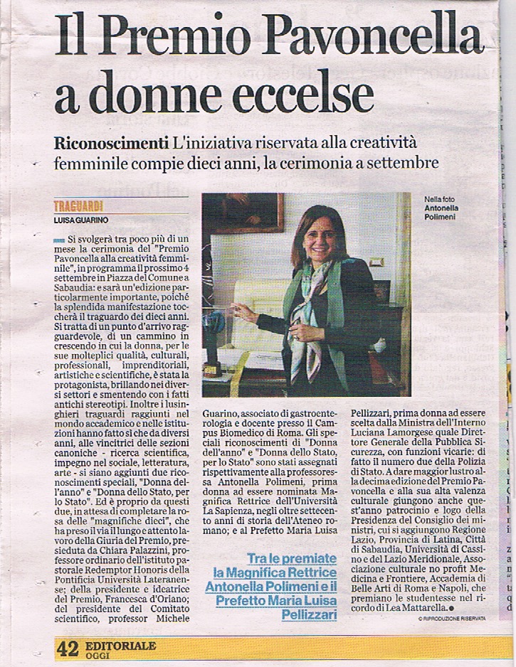 Rassegna Stampa: Premio Pavoncella X Edizione (4 settembre 2021) Editoriale Oggi 28 luglio 2021 Immagine 4 di 52 Share Me On: