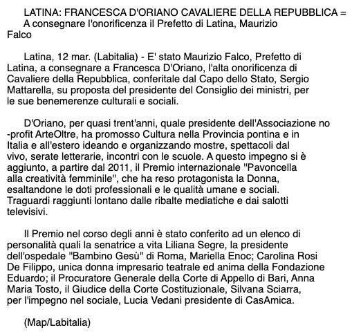 Rassegna Stampa: Premio Pavoncella X Edizione (4 settembre 2021) II lancio Adnkronos Immagine 43 di 52 Share Me On: