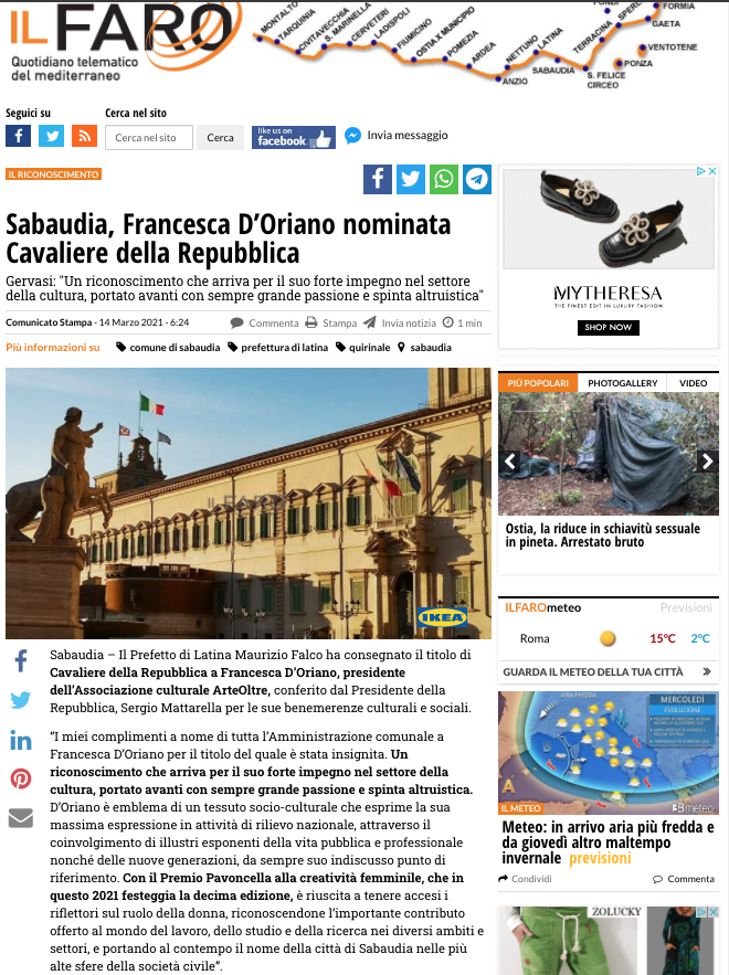 Rassegna Stampa: Premio Pavoncella X Edizione (4 settembre 2021) IL-FARO: 13 marzo 2021 Immagine 49 di 52 Share Me On: