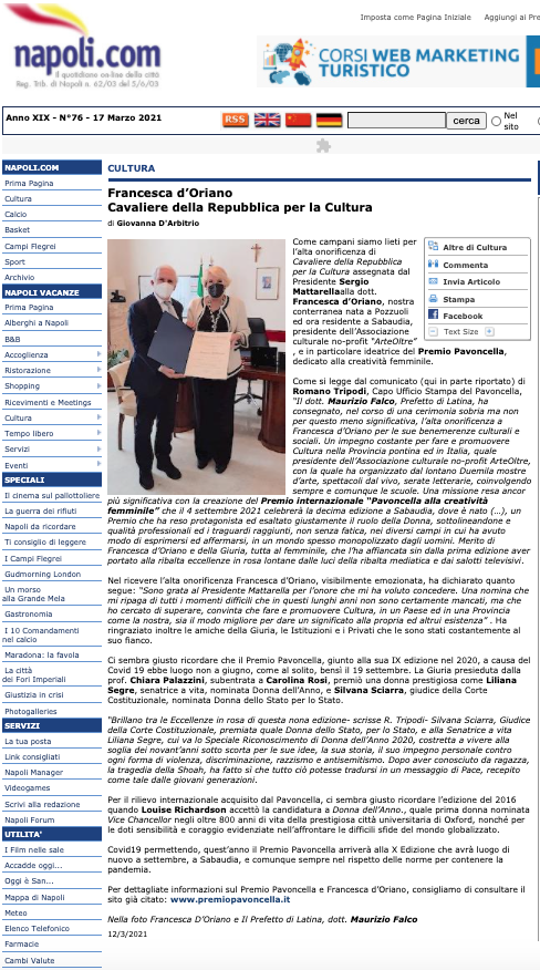 Rassegna Stampa: Premio Pavoncella X Edizione (4 settembre 2021) NAPOLI.COM_: 13 marzo 2021 Immagine 45 di 52 Share Me On: