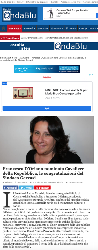 Rassegna Stampa: Premio Pavoncella X Edizione (4 settembre 2021) Radio Onda Blu:13 marzo 2021 Immagine 46 di 52 Share Me On: