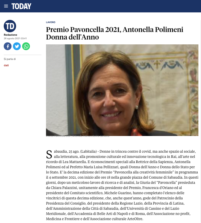 Rassegna Stampa: Premio Pavoncella X Edizione (4 settembre 2021) Today 1/3 Immagine 39 di 52 Share Me On: