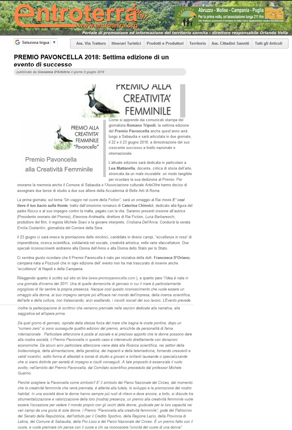 RassegnaStampa: Premio Pavoncella VII Edizione (22-23 giugno 2018) entroterra9062018 Immagine 6 di 19 Share Me On: