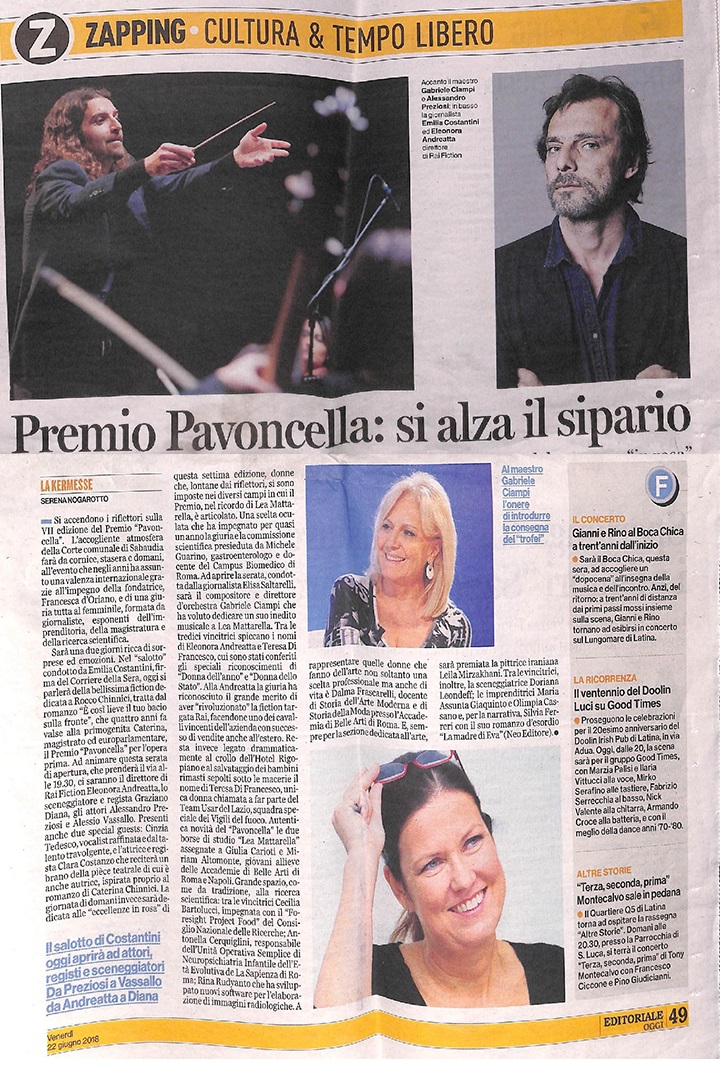 RassegnaStampa: Premio Pavoncella VII Edizione (22-23 giugno 2018) Latina Editoriale Oggi: 22 Giugno 2018 Immagine 10 di 19 Share Me On: